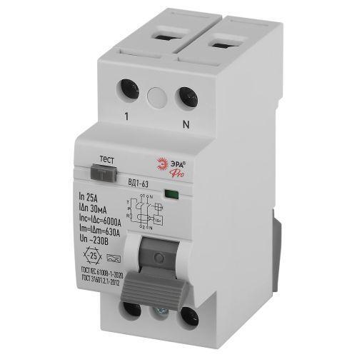 Выключатель дифференциального тока (УЗО) 2п 25А 30мА тип А электромех. ВД1-63 PRO VD2EM25A30 ЭРА Б0061762