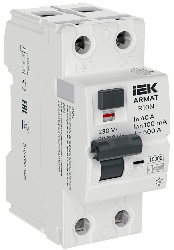 Выключатель дифференциального тока (УЗО) 2п 40А 100мА тип B ВДТ R10N ARMAT IEK AR-R10N-2-040B100