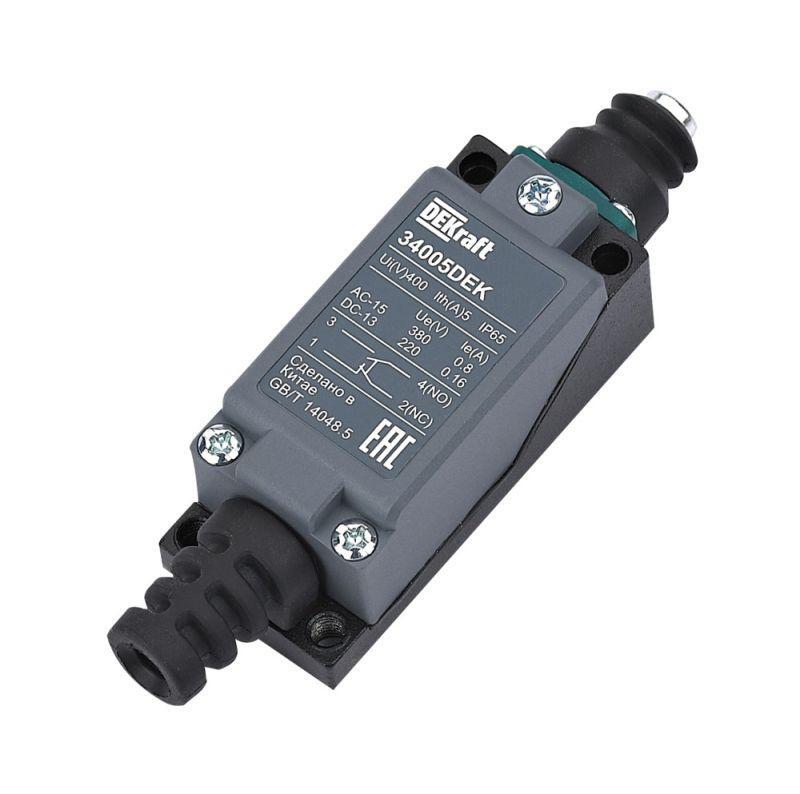 Выключатель концевой 1НО1НЗ кнопочный плунжер метал. DEKraft 34005DEK