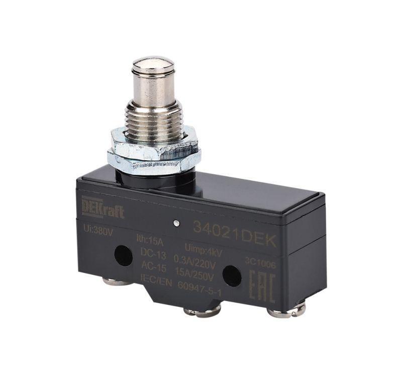 Выключатель концевой 1НО1НЗ миниатюрный длин. плунжерн. типа DEKraft 34021DEK