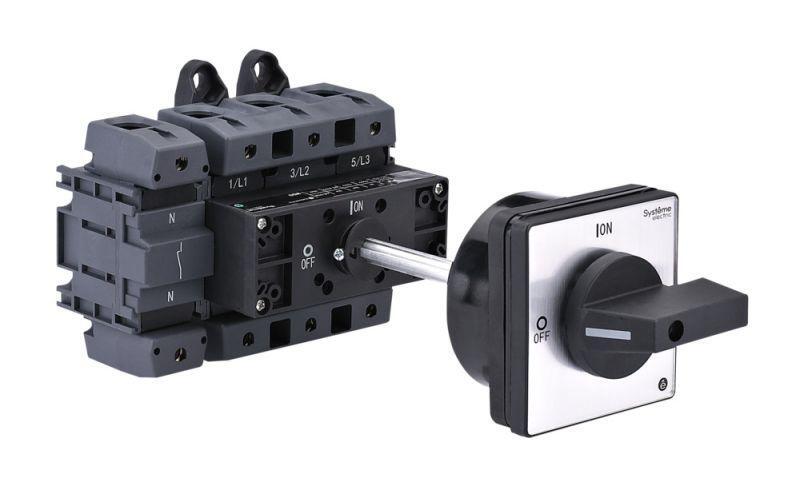 Выключатель-разъединитель MSD на номинальный ток 175 А применяется для коммутации силовых электрических цепей активной, индуктивной или смешанной нагрузок, может использоваться для включения и отключения двигателей категорий применения AC–3 и DC–3. 4-полюсное исполнение с черной выносной поворотной рукояткой, монтаж на DIN-рейку или монтажную плату на задней панели шкафа. Длина штока в комплекте 50-150 мм.