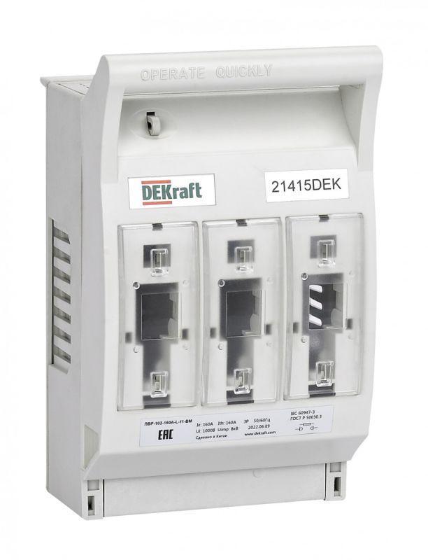 Выключатель-разъединитель-предохранитель ПВР горизонт. 160А 3ф отключ. 1НО+1НЗ навесной монтаж на шину ПВР-102 DEKraft 21415DEK