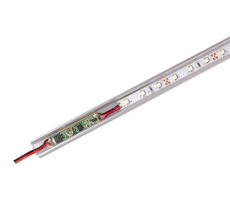 Выключатель сенсорный – удобное в применении устройство.Идеально подходят для установки в алюминиевый профиль PAL . Важно! Перед установкой в профиль следует извлечь выключатель из корпуса. Выключатель устанавливается в цепь между блоком питания и светодиодными источниками света согласно маркировки и с соблюдением полярности (красный провод «+», черный «–»). Выключатель сенсорный 3-х позиционный – 3 режима – включение, выключение и промежуточный режим – 50% светового потока