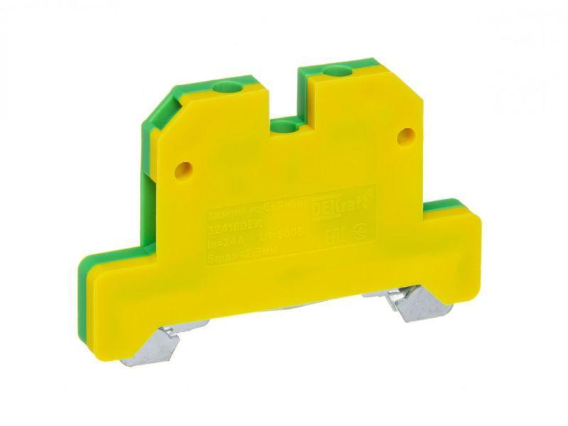 Зажим наборный серии ЗН-101 Dekraft ; номинальный ток - 24 А; сечение проводов от 1 до 2,5 кв.мм; цвет – желто-зеленый; материал корпуса - полиамид; материал клемм и винтов – латунь; монтаж - защелкиванием на DIN-рейку; количество в упаковке – 40 шт. Клемма выполнена таким образом, что обеспечивает двойной обжим проводника. Это обеспечивается в том числе и за счет насечек на клеммах. Зажимы наборные желто-зеленого цвета применяются для подключения нулевого защитного проводника PE.