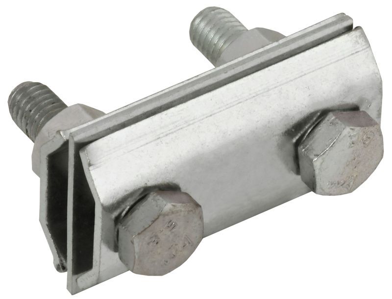 Зажим соединительный сквозной двойной пруток-пруток предназначен для соединения круглых проводников. Способен зажимать проводники как соосно, так и параллельно друг другу. Состоит из трёх пластин и зажимных болтов с гайками. Двухрядная конструкция соединителя позволяет зажимать до 4-х проводников в соединении. Материал корпуса - нержавеющая сталь.
